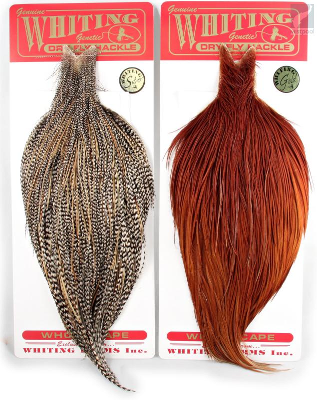 Whiting Farms Capes are the ultimate in dry fly tying! With long supple quills and incredible barb density capable of tying down to the smallest sizes, Whiting Genetic Dry Fly Hackle is the connoisseurÂ’s choice for fly tying. This product line derives its heritage from the legendary Hoffman grizzly super hackle stock. Only Whiting Farms has this incredible genetic stock to offer you.