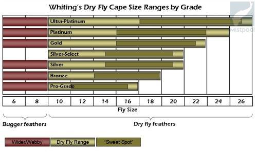 Excellent choice for dry flies. Feathers have supple quill, void of twist and contains dense barbing. Your flies will float higher than ever before and will float longer. Even without floatant.
