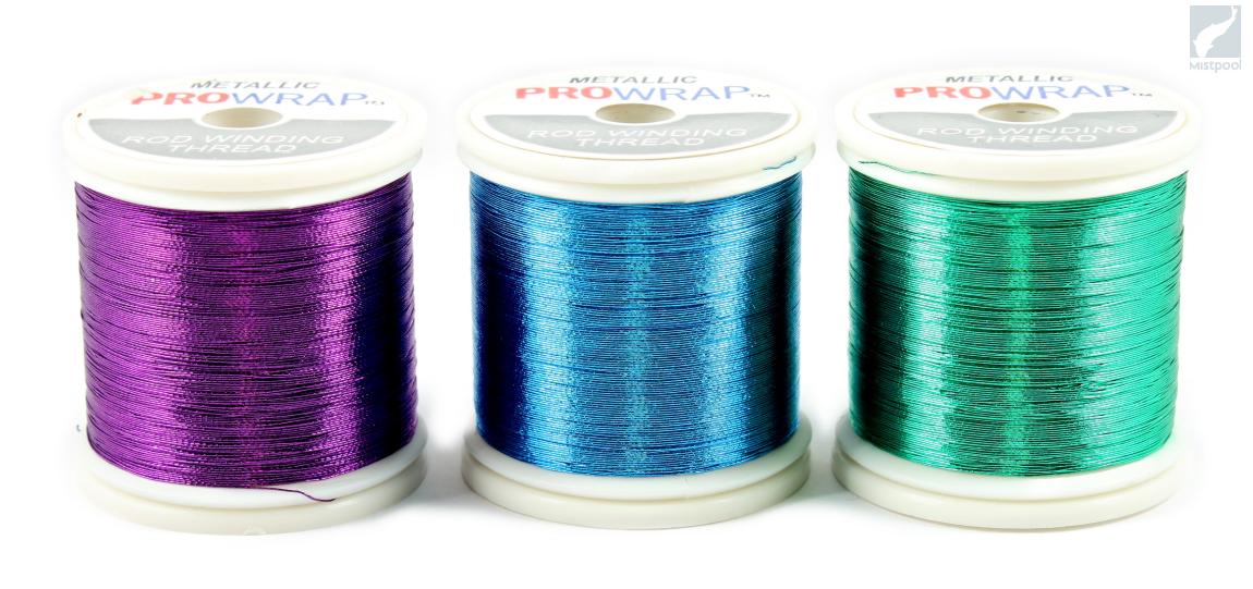 ProWrap Metallic is a quality choice for rod builders. It's profits are strong structure and bright pressure dyed colors. Those features make it easy to use for all kind of rod building projects, giving you a possibility to product solid result. Core of the thread is made of nylon and coating from shiny metal.