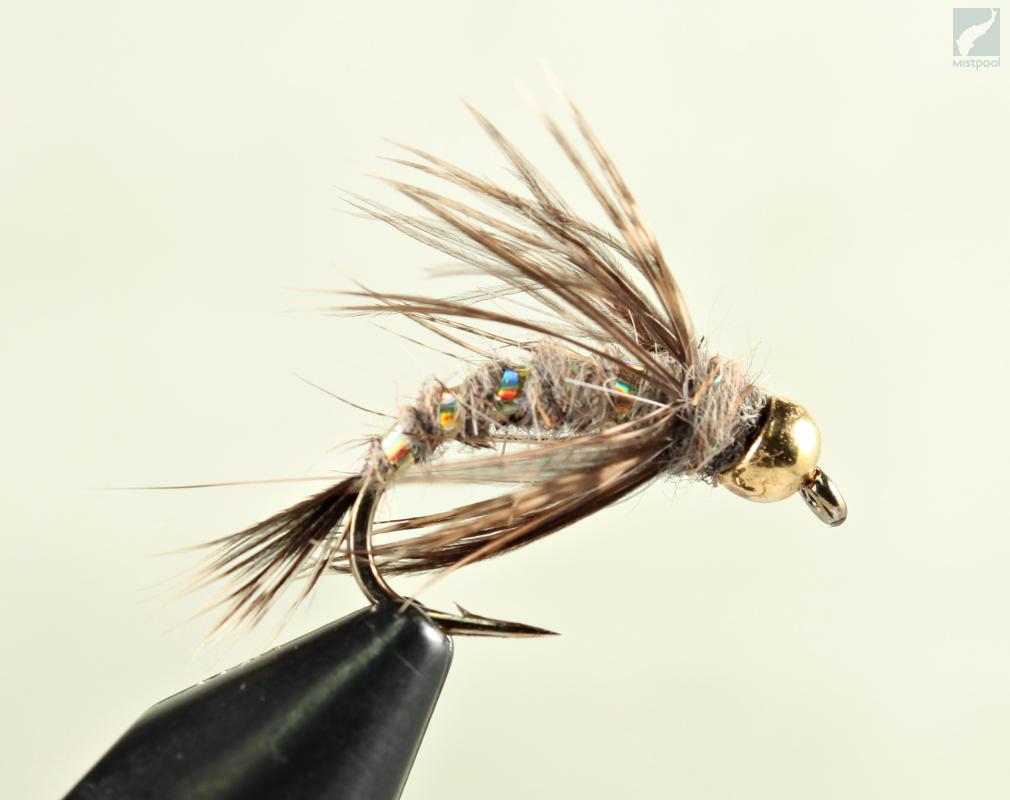 Holographic Hare's Ear Depth Charge is an insect imitation tied on a curved hook. It imitates larva state of many different insect. Beadhead gives some extra weight for the fly. Good choice for grayling and trout fishing.