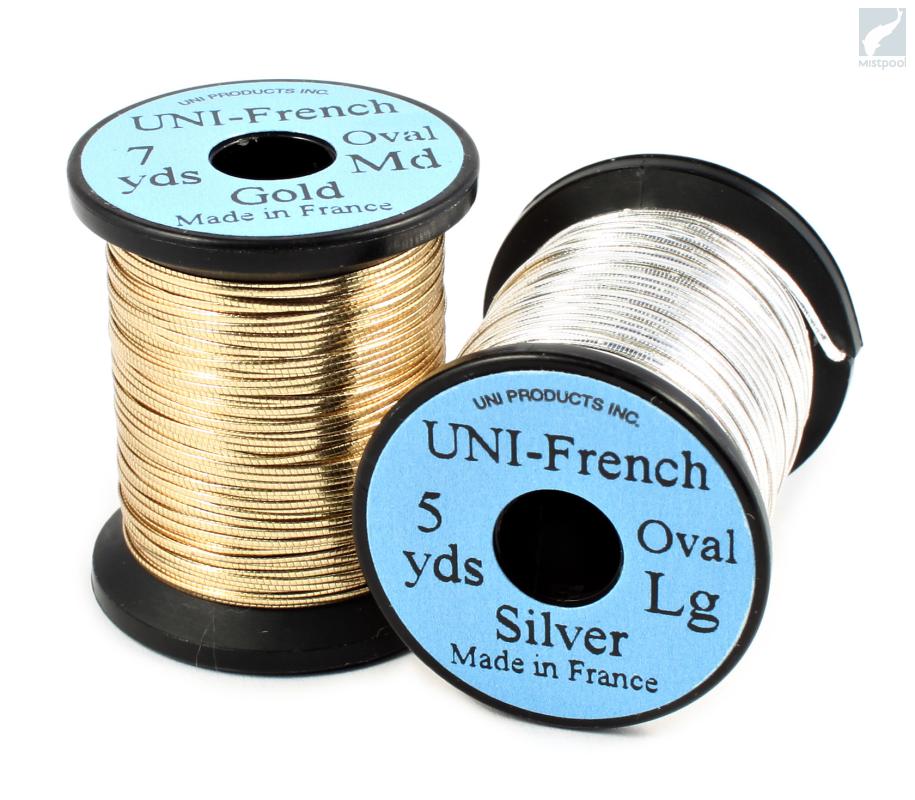 UNI French is a high quality oval-shaped metallic tinsel. It is varnished for preventing surface from tarnishing. Suitable for salmon flies, streamers and insect imitations.