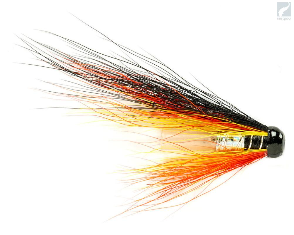 Riffle Tubes are probably the most enjoyable way to fish salmon. You'll see the fly all the time as it moves on the surface and will see as the salmon takes the fly. In riffle tube flies the line is not going in from the front of the fly. It will go from the side which will make the fly swim across the river.