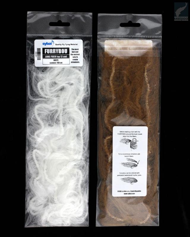 Sybai Furrybou is the most fast and the easiest way to create an naturalistic bait fish imitation for fresh and saltwater. Furrybou can be colored with permanent waterproof marker pens. Use for bodies and heads. Easy to use, just wrap around hook shank just like hackle feather. Made of synthetic material.