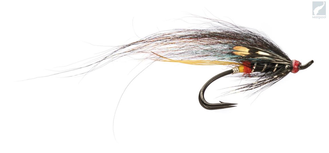 Black Doctor is darker and hair-winged version of the classic english fly pattern Silver Doctor. Dark colors make this fly perfect for all weather conditions. Cheeks are tied of jungle cock substitute. Tied on double hook.