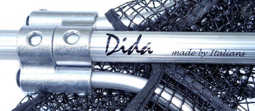 Dida Vonkale Nets are made of durable aluminium. Extremely robust build. These nets are folding and have a long telescopic shaft. Rubber mesh is friendly for fish. Good choice for boat fishing and to fishing places with high banks. Made in Italy.