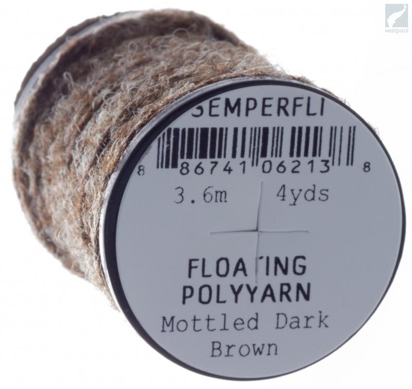 Semperfli Dry Fly Polyyarn - Genuine very buggy polyyarn ready for simply wrapping around a hook to dub a dry fly. Dry Fly Polyyarn has a specific density of 0.91 g/cm³ so it floats naturally. Natural polyyarn like Dry Fly Polyyarn floats on the waters surface without the neccessity for floatant making is ideal for dry flies. Semperfli has developed this to look highly "buggy" looking yarn which can simply be tied in and wrapped around the hook for dry fly bodies. With the nodules of polyyarn on Dry Fly Polyyarn it will help floatability and look of your flies. With blended colouring it matches the irregular coloring on natural flies. This floats like a cork.
