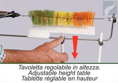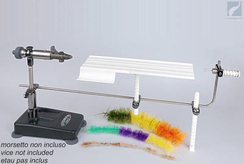 Stonfo Dubbing Brush Device is an accessory for rotary vises, specially designed to make dubbing brushes of 23 cm max. The table, steady and with adjustable height, allows to apply easily various types of material on the metallic wire. A special niche facilitate a precise cut of these materials to the desired length.