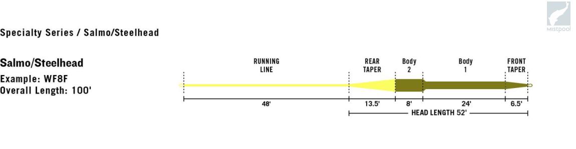 RIO InTouch Salmon/Steelhead fly line has been specifically designed to meet the demands of the modern steelhead and salmon fly fisher. The long head and rear taper allow anglers to mend and control the fly at great distance when fishing the swing. A powerful bullet front taper ensures the line easily handles large steelhead and salmon flies, while the rear weight distribution makes this a great line for single handed roll and spey casting. The line is built with a supple coldwater coating that ensures the line remains tangle-free. Built with ultra-low stretch ConnectCore Technology for the maximum in sensitivity, control and performance.