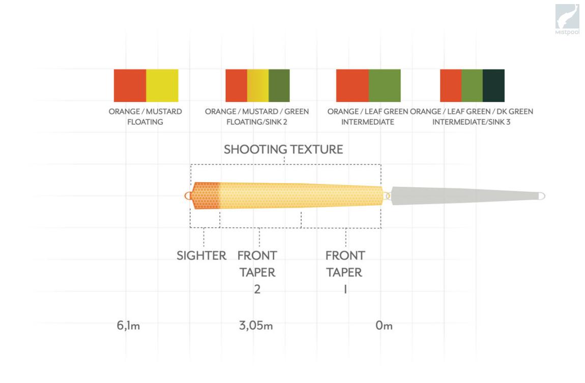 - Rear weighted powerful shooting head developed for longer casts and line control