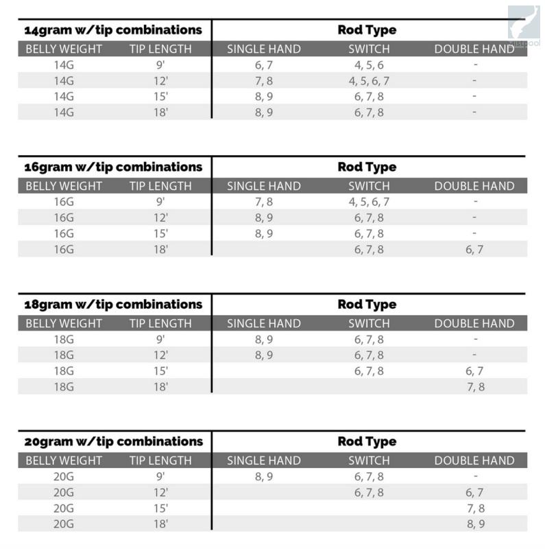 Based on skillset, fishing/river conditions or rod type there is a belly/ tip combination available, whether you’re into “Skagit style”, “Scandi Style” lines or a hybrid version of the two.