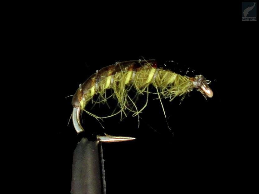 SM Czech Nymph on ns. tsekkilarva, joka jäjittelee vesiperhosen toukkaa, larvaa. Perhon rungon väri on suosittu oliivi, joka toimii kaikissa tilanteissa. Perhossa on lisäksi elastisesta kumista sidottu selkäkilpi ja kirkkaan vihreä kierre.