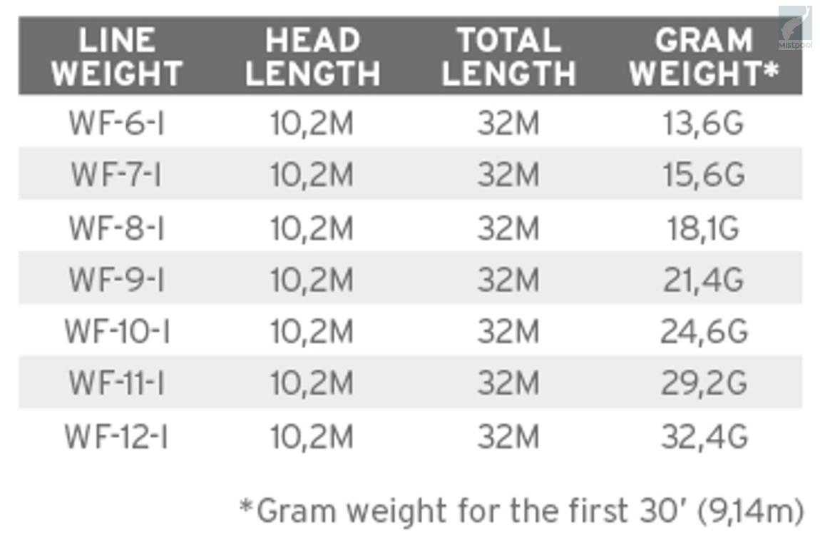 WF-8-I 33.5’ / 10,2m 105.0’ / 32,0m 280gr / 18,1g
