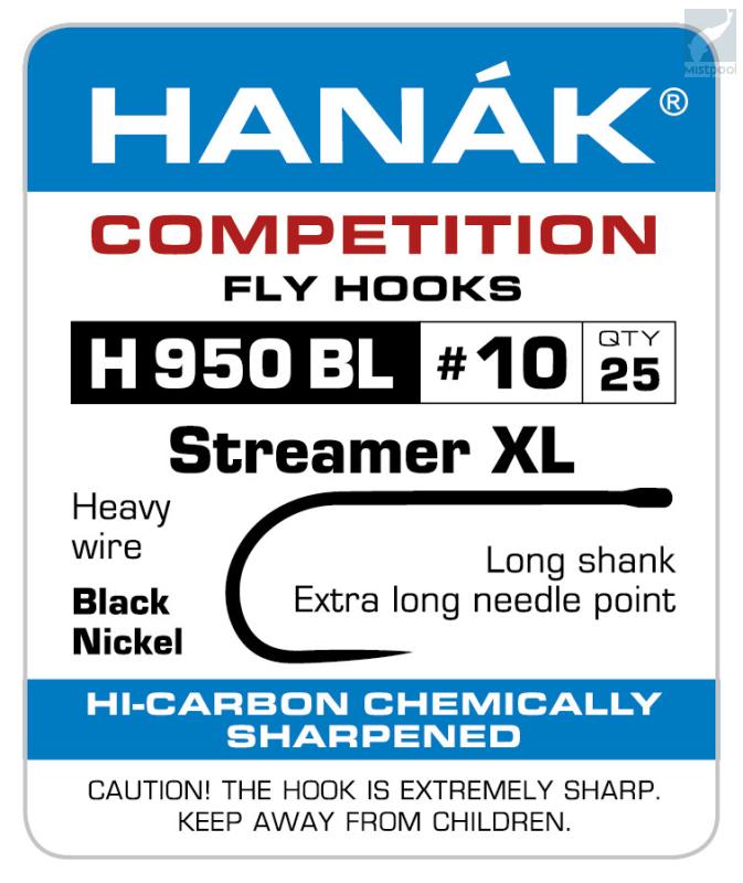 Hanak H950BL Streamer XL on vahva ja pitkävartinen väkäsetön koukku. Koukussa on laaja kita ja suora silmä. Hyvä valinta kun sidotaan streamereita suurille kaloille.