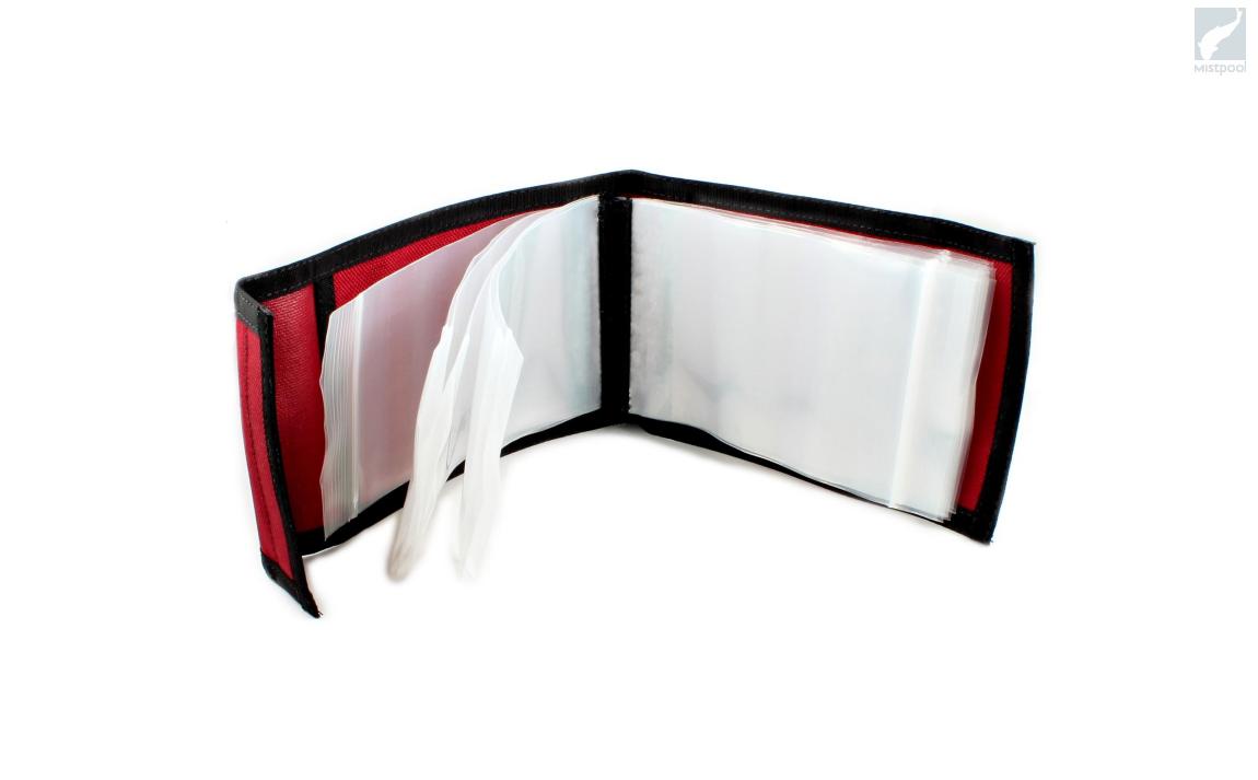 RIOs taffsbehållare ser till att dina löslinor hålls i ordning och bra skick. Behållaren innehåller 12 behändiga plastfickor för taffsar och sinktippar. Förutom fördiga taffsar kan man även ha självgjorda taffsar i dem som man gjort före resan. Produkten är tillverkad av hållbart corduratyg och fästs behändigt. RIOs Taffsbehållare är lämplig för att transporteras till exempel i bröstfickan eller flugvästen.