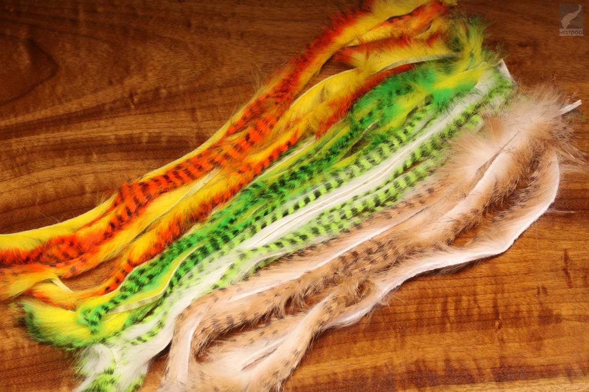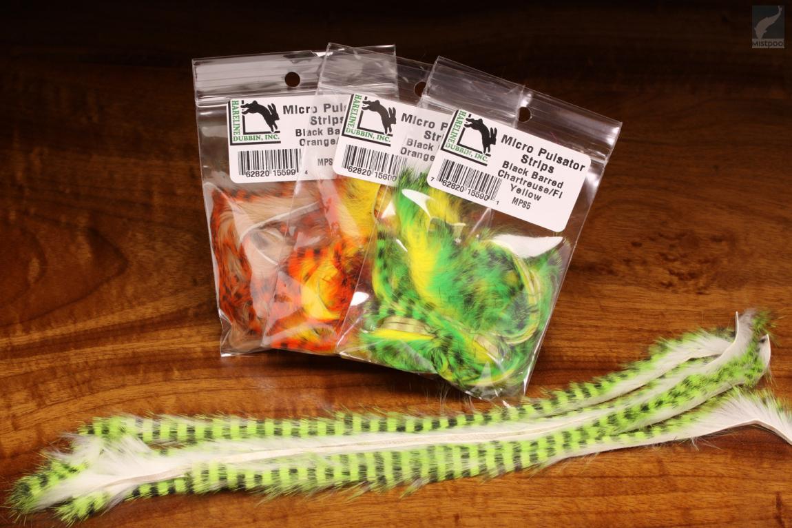 Harelines Micro Pulsator Strips zonkern är tillverkad av kanin och klippt tunnare än vanlig zonker. Håren är färgade till flera färger vilket ger ett fint utseende åt flugan. Zonkern kan fästas på kroken med en ribbing eller som en hackel med att rulla den på kroken.