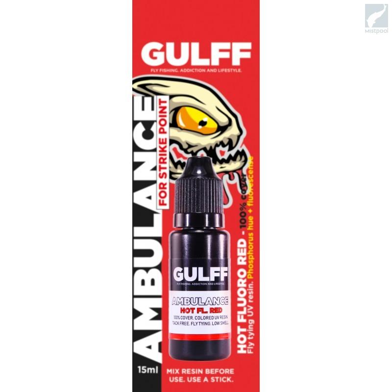 • Ambulance colors are 100% covering resins that combines a maximum fluorescent effect with a light capacitive feature for night fishing. These properties make this resin product quite a machine. This UV resin product family is probably the most popular and best-selling product in the market of coloured resins. The purpose of the product is to make the fly easily noticeable and extremely irritating. Fluorescent and glow-in-the-dark resin for impact points is easy to use and is ideal both for making new flies and for tuning old flies. Please note that due to the high pigment content, this product cannot be used on wide surfaces or in thick coats. Good choice for attention and strike point use. Make small spots and thin layers, cure 10-15s. Use clear Gulff resins for coating if needed.