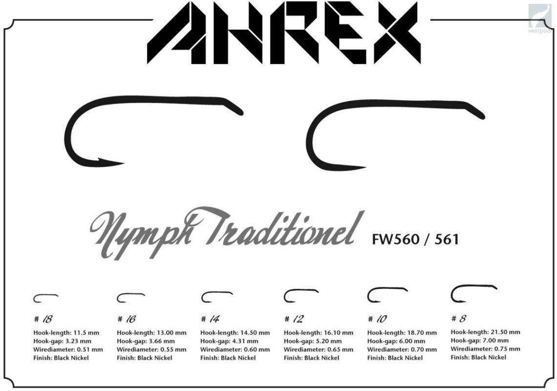 Ahrex FW560 - Traditional Nymph is a classic looking nymph hook with the added benefit of the black nickel finish.