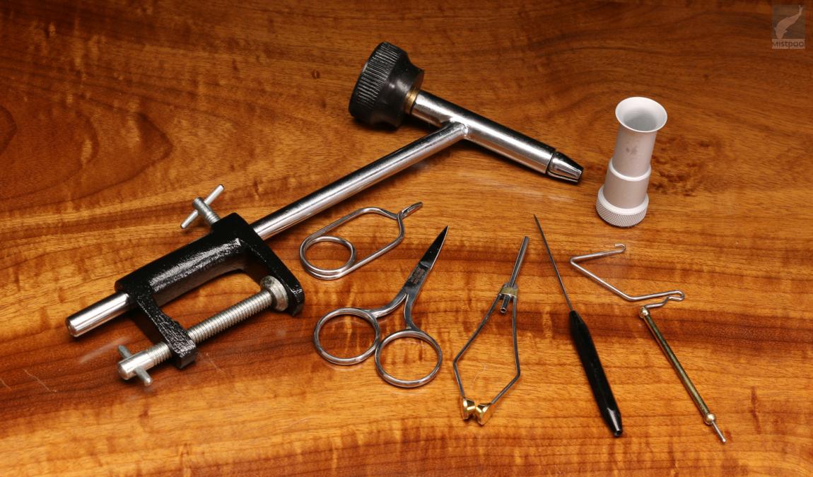 Hareline Fly Tying Material Kit with Economy Tools and Vise includes following parts: