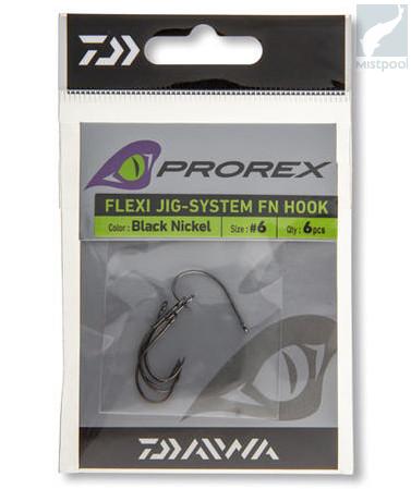 Daiwa Prorex Flexi Jig-System FN Hook – These fine high-quality hooks with chemically sharpened hook tip are the fitting hooks for the Prorex Flexi Jig-System TG tungsten heads.