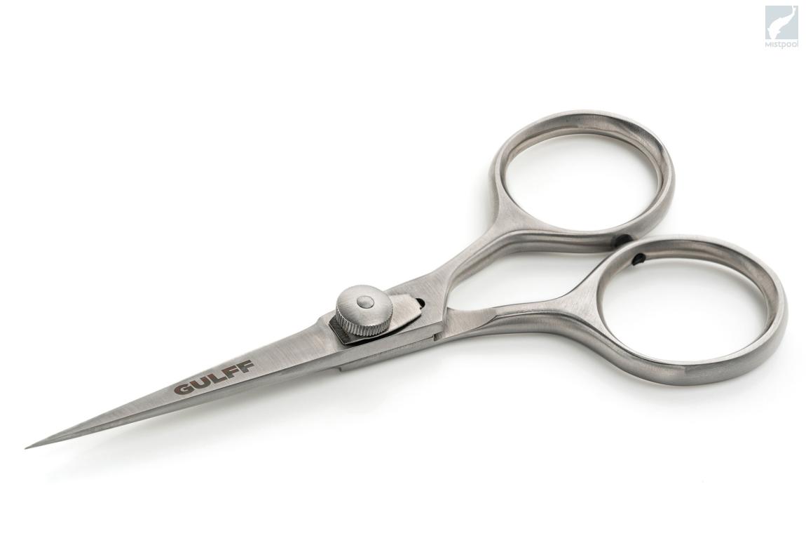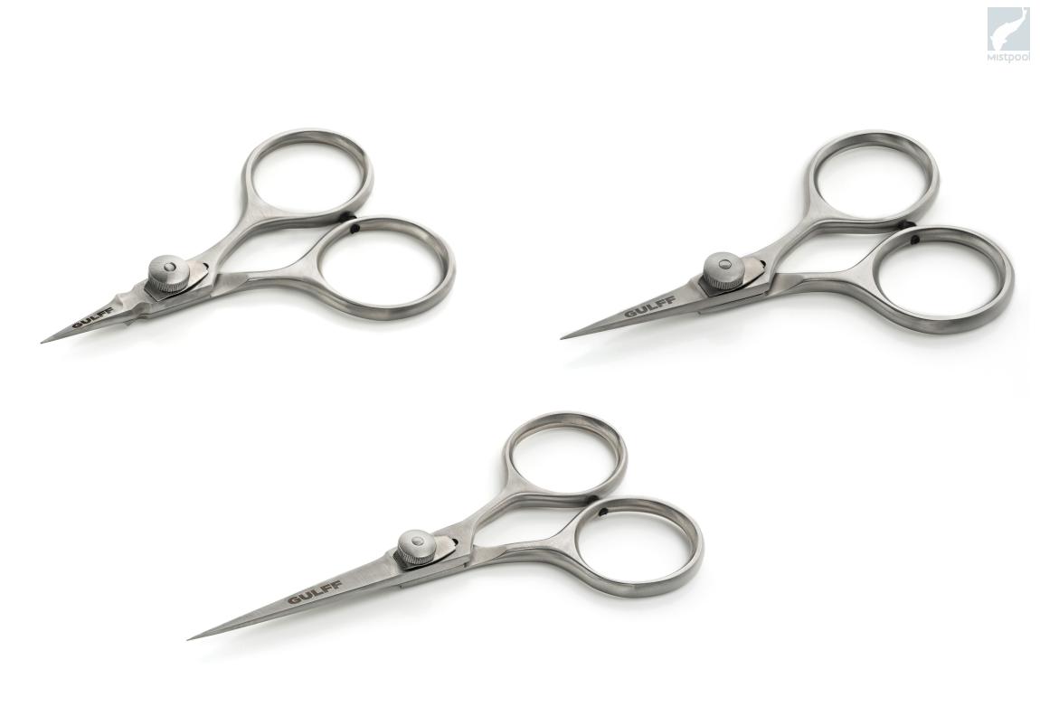 Gulff Hard Face Scissors have modern design and all models come with adjustable tension. Good choice for active fly tier. Three different models for smaller flies & precision work, all-a-round use and large streamers. Micro serrated blades are perfect for cutting both synthetic and natural tying materials. We do not recommend cutting thick nylon lines or metallic wires as they may decrease the expected life-time of high quality tying scissors.